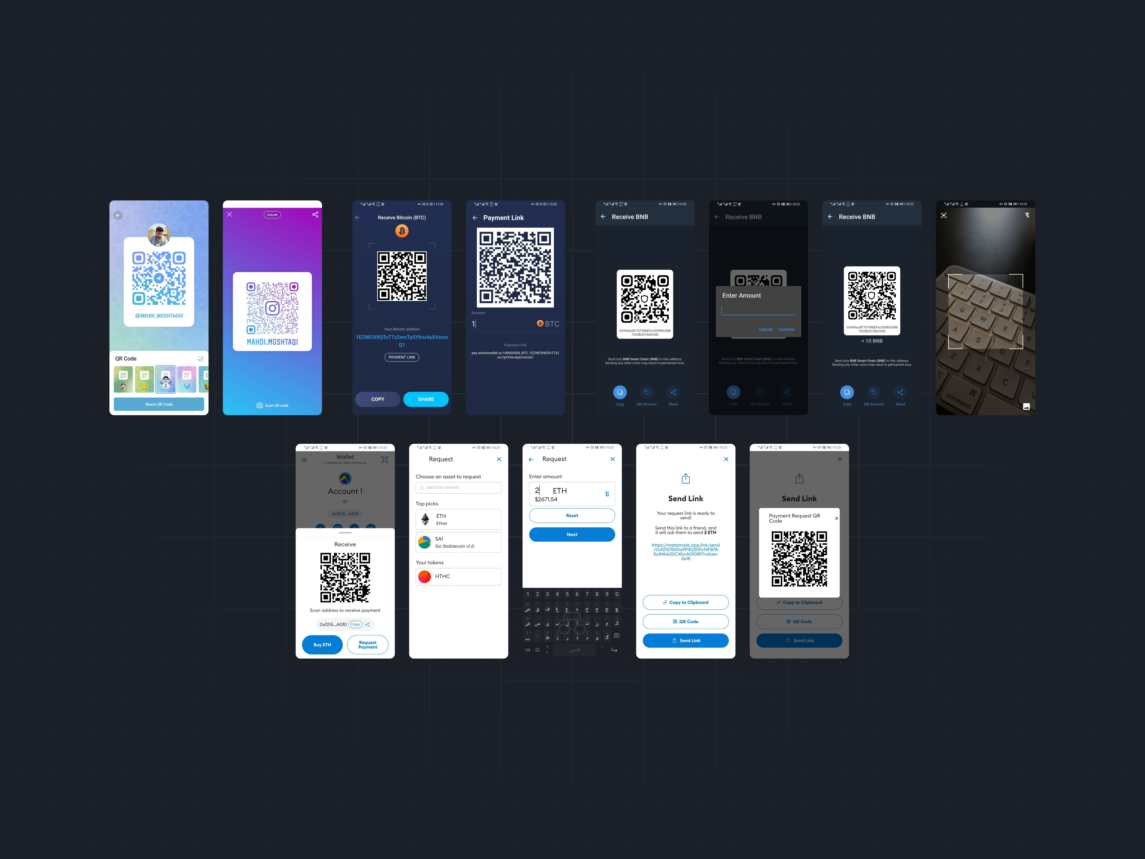 برای اینکه خروجی درستی داشته باشیم، فقط به آنالیز اپلیکیشن‌هایی که در صنعت ما بودن مثل Paypal و Google Pay اکتفا نکردم و سراغ اپ‌های قابل اعتمادی که فیچر QR و یا رفتاری مشابه رو داشتن رفتم. از Trust Wallet و Atomic Wallet گرفته تا Instagram و Telegram و حتی Clash of Clans.